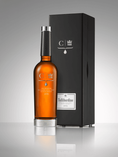 Tullibardine 1970 is a mature, highly fragrant expression and the combination of two sherry hogsheads, one a first fill and the other a second fill. The 1970 offers a rich hint of bees wax with fresh citrus notes of tangerine, balanced with sweet barley, hints of almonds, spice, crème brulee, baked bananas and a touch of vanilla, and is housed within a sleek bottle.